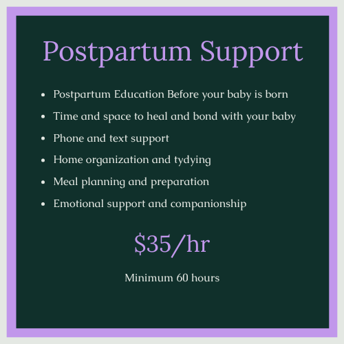 My postpartum care is centered around caring for the mother. But I am happy to hold your baby for a couple hours while you are napping, showering or taking some time for yourself.